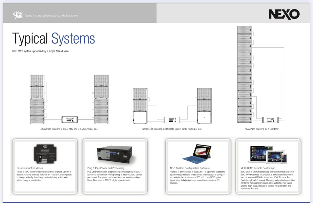 Recommended powering solution – NXAMP4x4 Powered TDcontroller: 3 x GEO M12 per channel