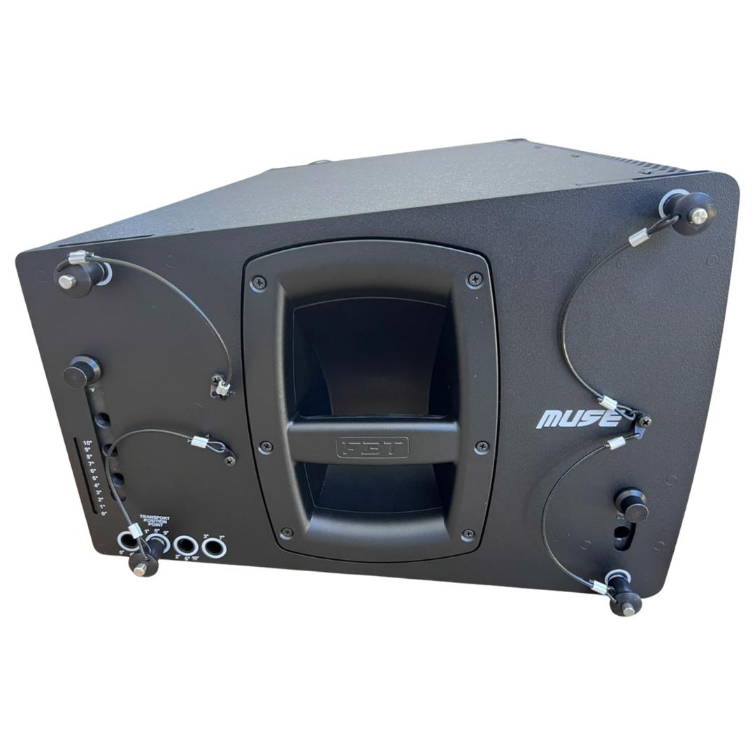 Cada elemento MUSE modular consta de dos woofers de diseño personalizado de 250 mm (10") con bobinas de voz de alta excursión de 64 mm y dos controladores de compresión B&C HF personalizados con garganta de 25 mm (1"). La guía de ondas, optimizada a través de una serie de simulaciones utilizando elementos finitos BEM para eliminar la distorsión, cuenta con una dispersión horizontal de 90°. Ha sido diseñado para presentar una carga óptima al diafragma del conductor a 800Hz, permitiendo así la propagación de una onda acústica en el campo horizontal hasta 18kHz. El recinto resultante puede enfrentarse incluso a los entornos físicos más desafiantes, proporcionando una fuente cilíndrica ideal, mientras que la configuración acústica de la bocina central ofrece una dispersión horizontal particularmente lineal y simétrica.