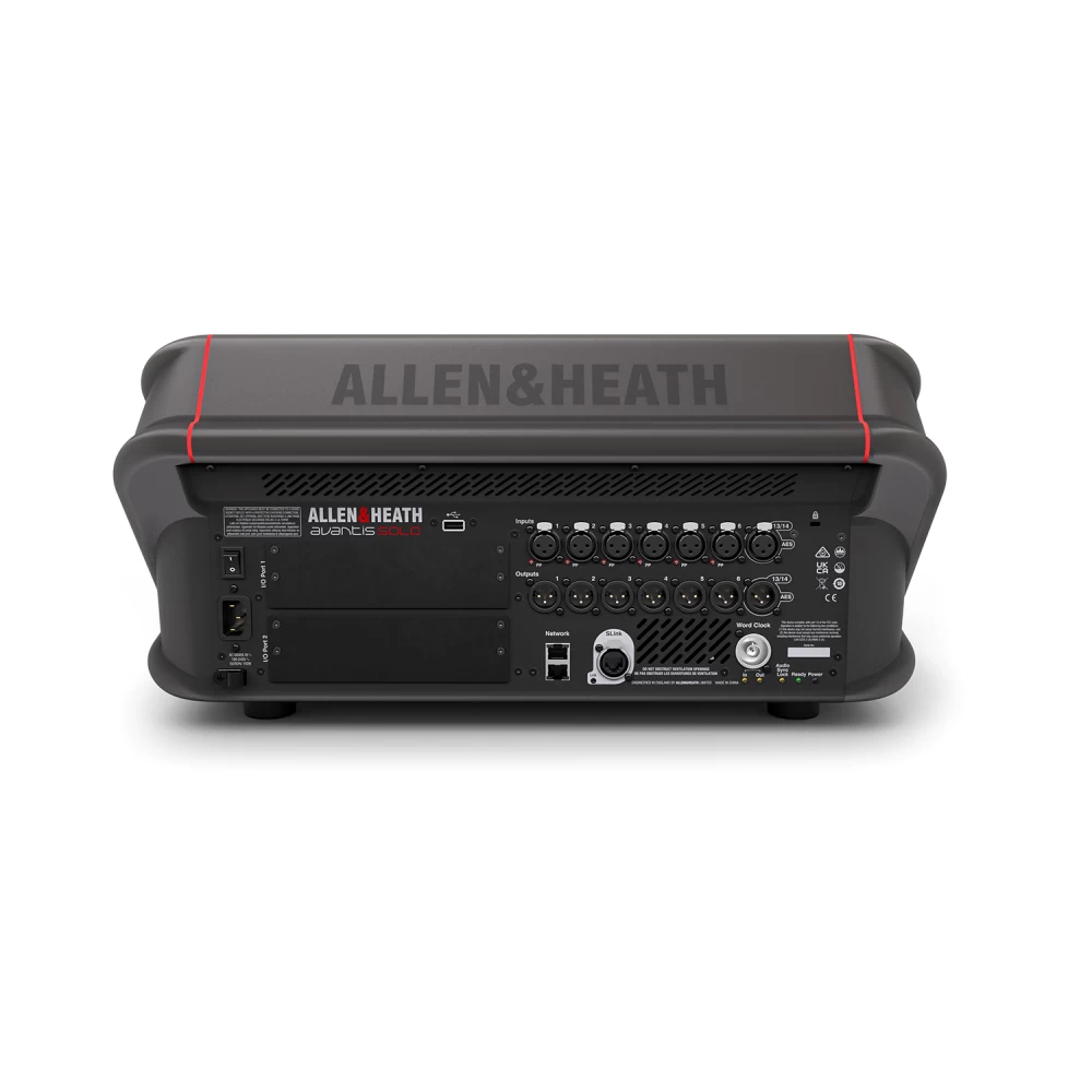 Impulsado por el avanzado motor XCVI FPGA de 96 kHz, Allen & Heath Avantis Solo es una consola de mezclas digital configurable avanzada de 64 canales/42 buses con una pantalla táctil de 15″ y un flujo de trabajo superflexible. El mezclador cuenta con amplias opciones de E/S y puede actualizarse con el procesamiento del sistema de mezcla insignia dLive.